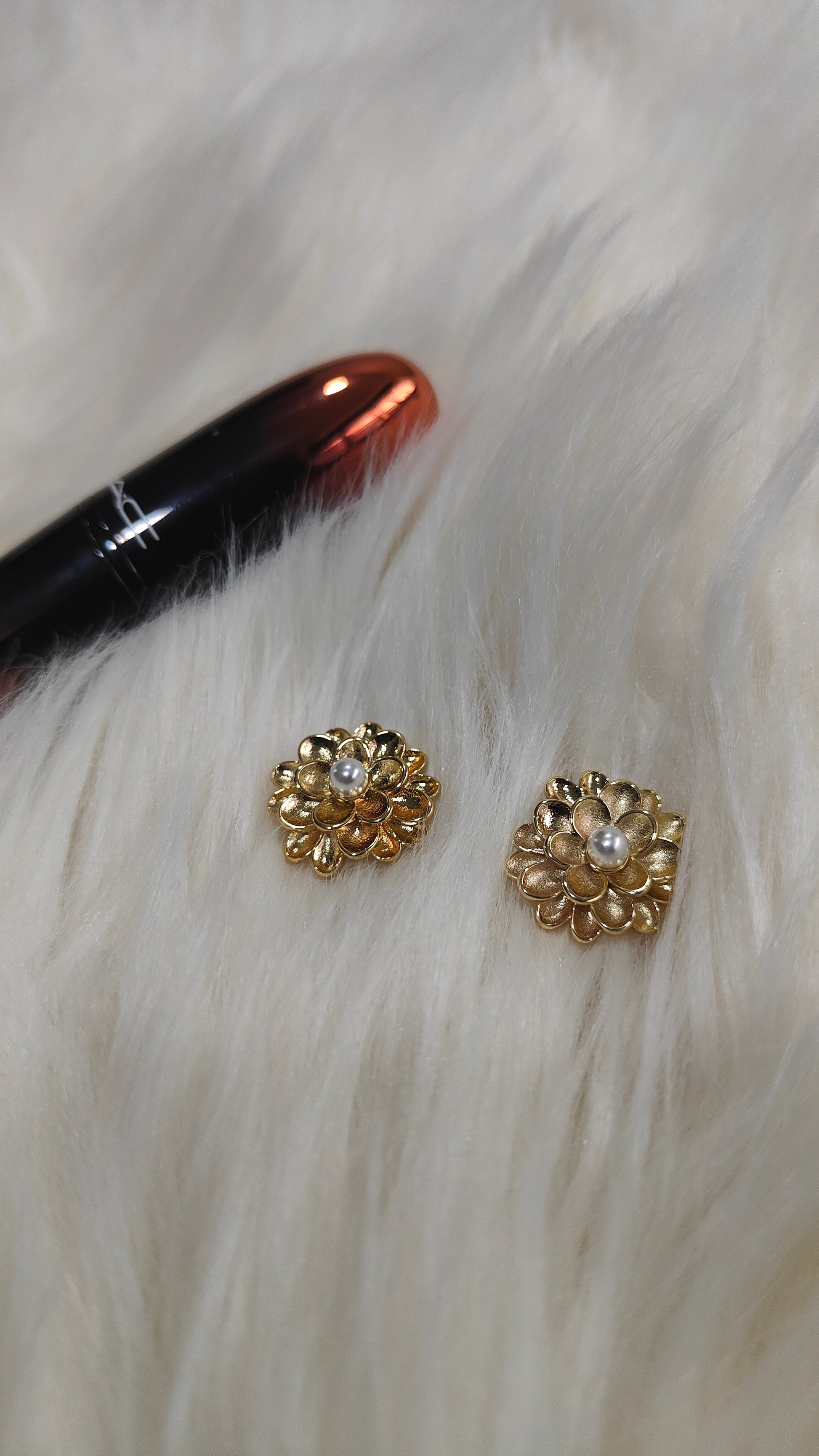Shine bright with our Golden Marigold studs. Crafted with stainless steel and thick gold plating, these unique and anti-tarnish earrings feature delicate designs and a stunning pearl center. Hypoallergenic and waterproof, they're perfect for everyday wear. Just like you, they'll stand the test of time. (Just don't go swimming in them!) ;)
