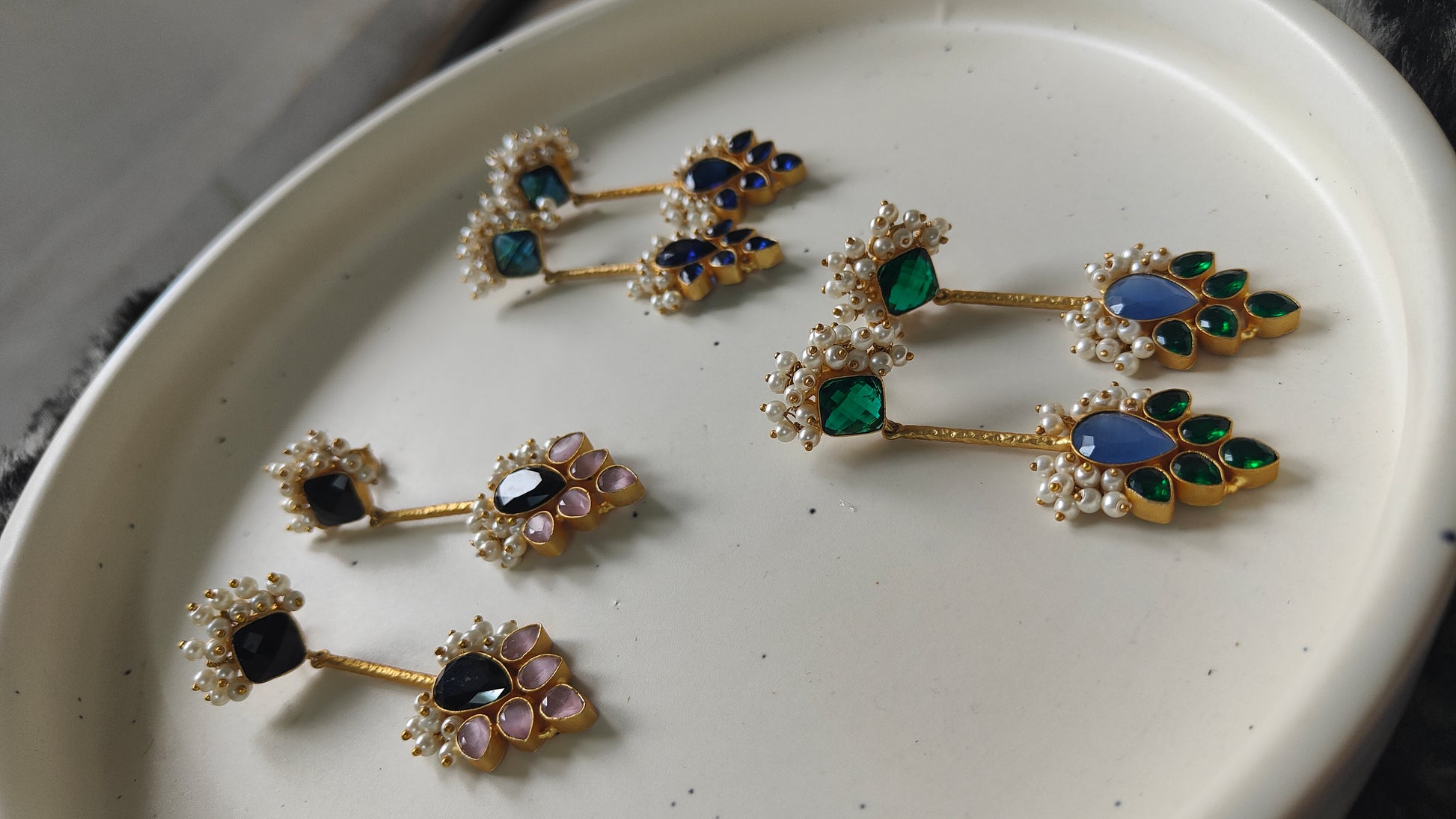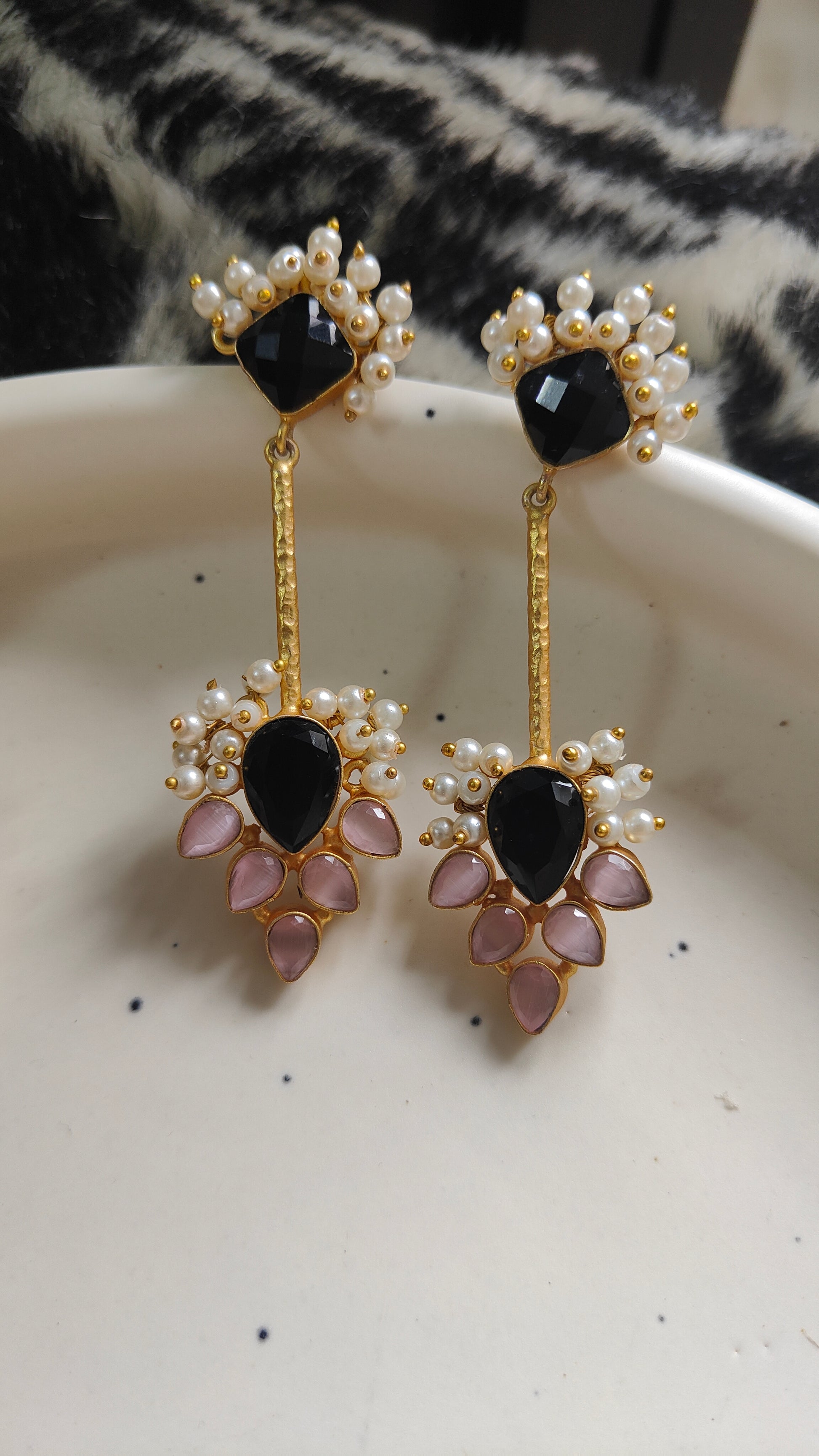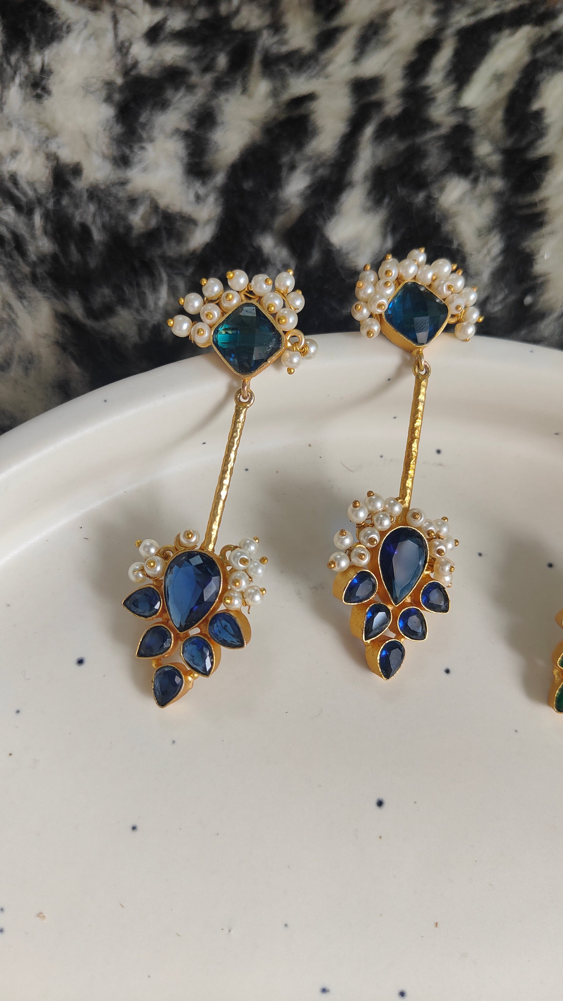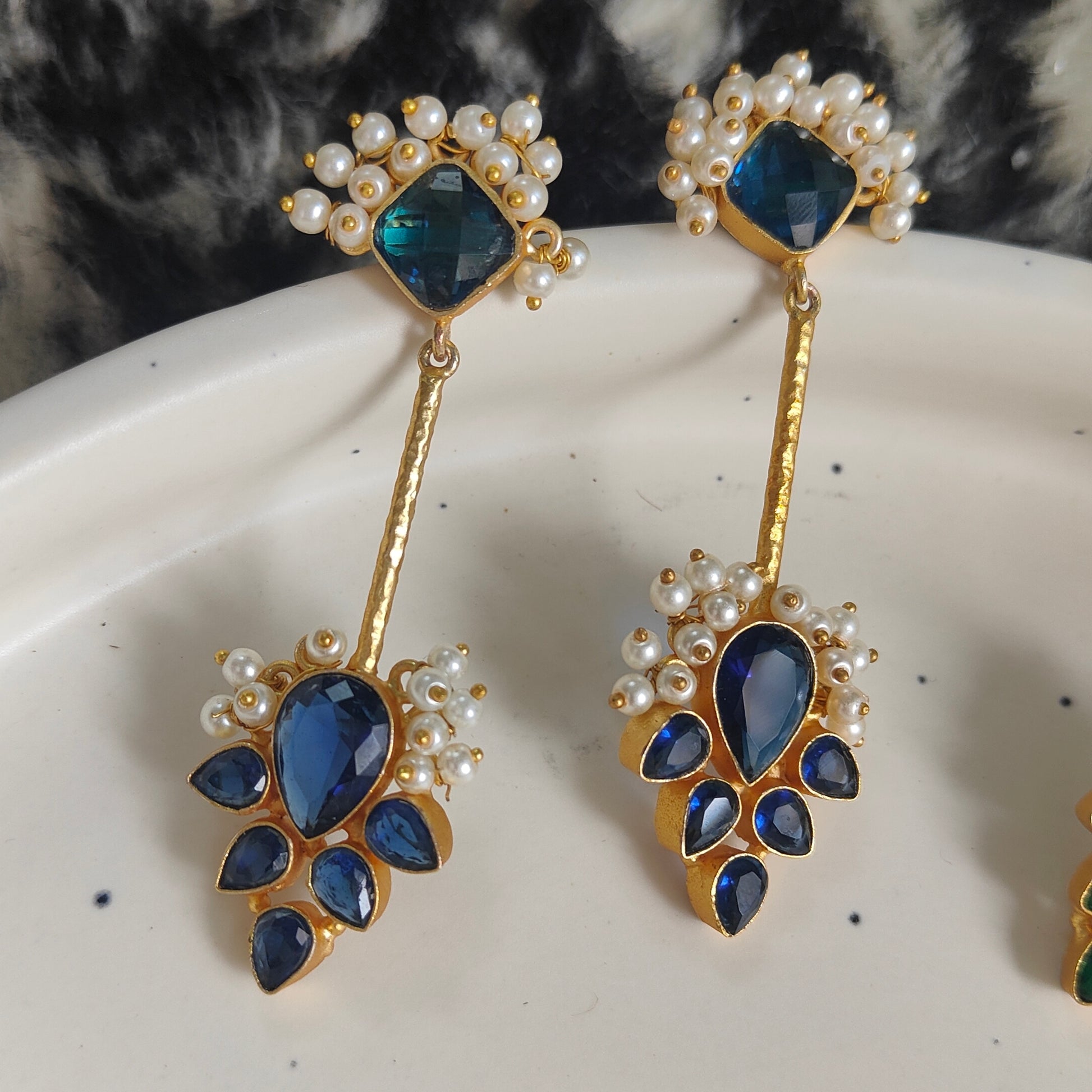 Introducing Haya, our elegant traditional lightweight earrings. Available in Peacock Blue, Black and Pink, and Blue and Green. Crafted with brass for a comfortable all-day wear. Indulge in luxury and style without sacrificing comfort.