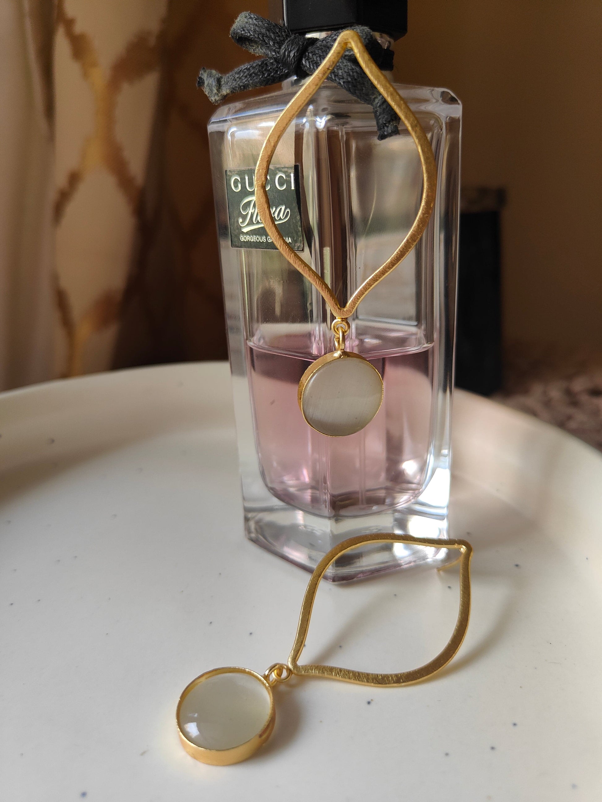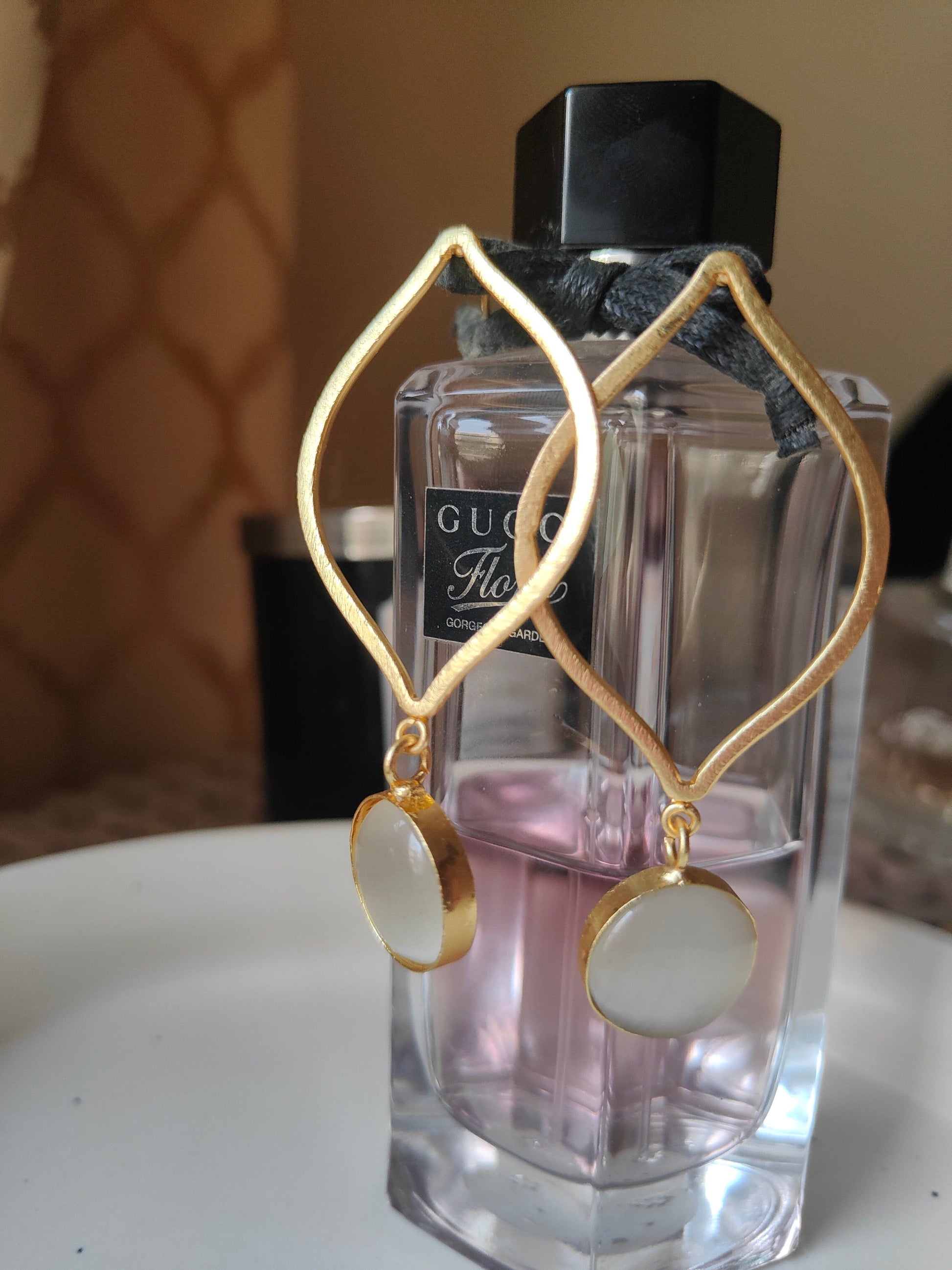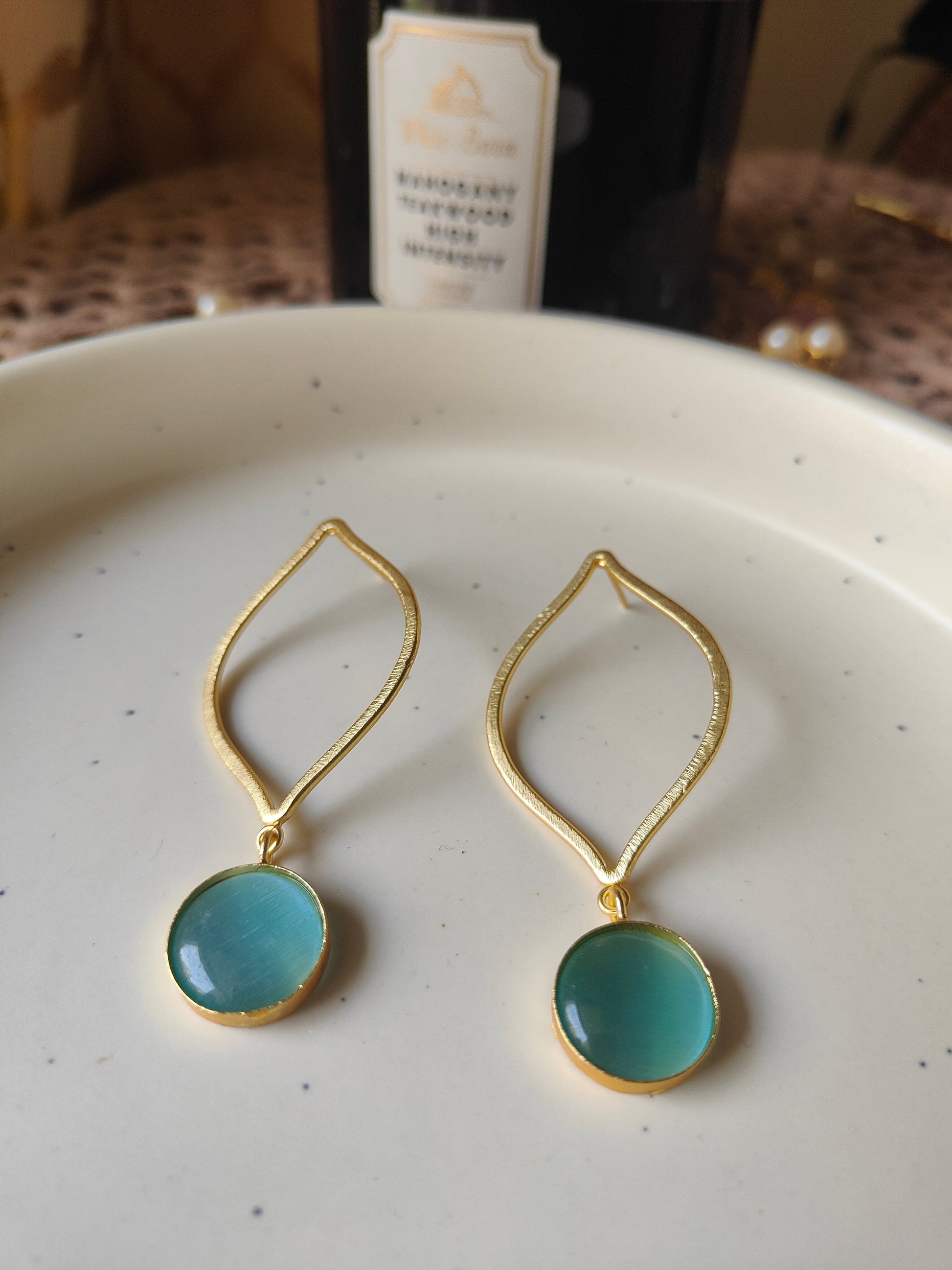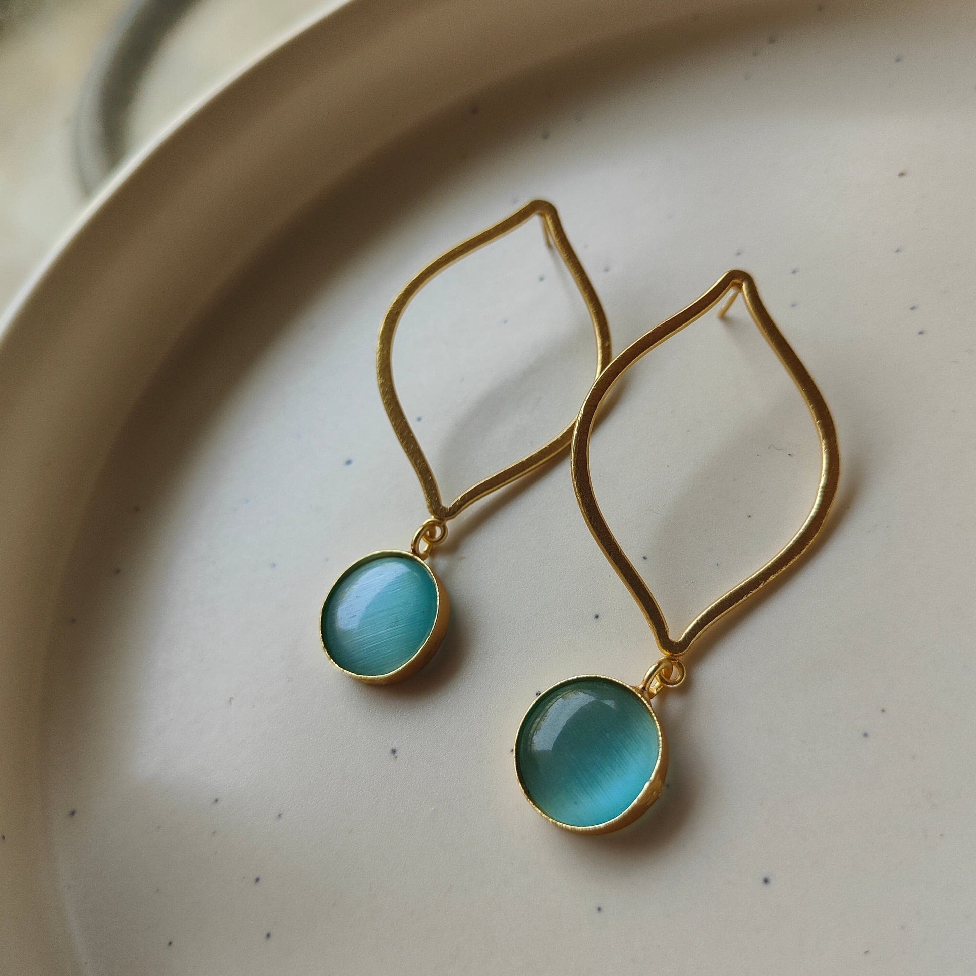 Introducing Masha brass drop earrings - a contemporary and minimalistic design available in 2 eye-catching colours. Add a pop of aqua blue or elegant white to your outfit with the unique monalisha stone drop. Perfect for those who like to keep it simple, yet stylish.