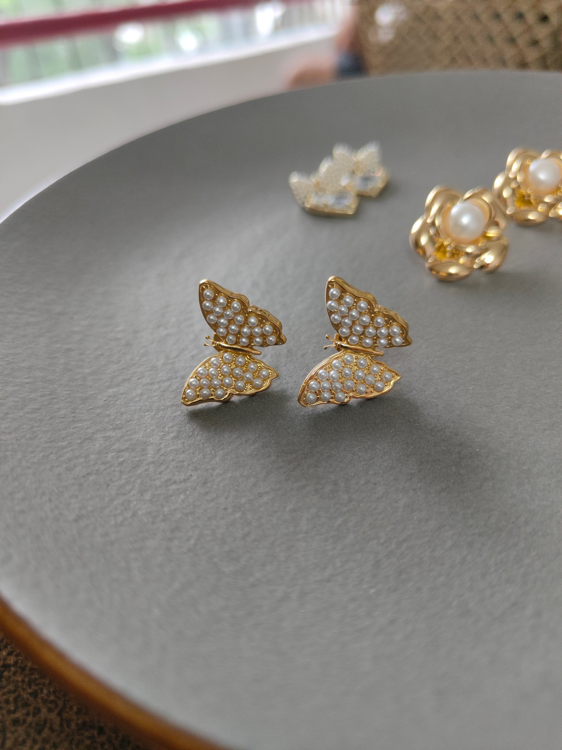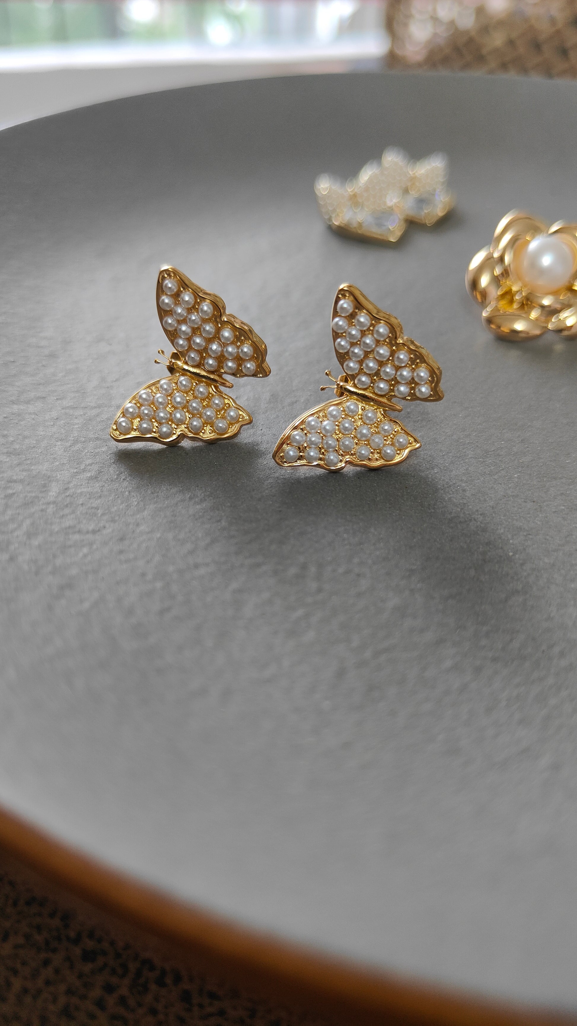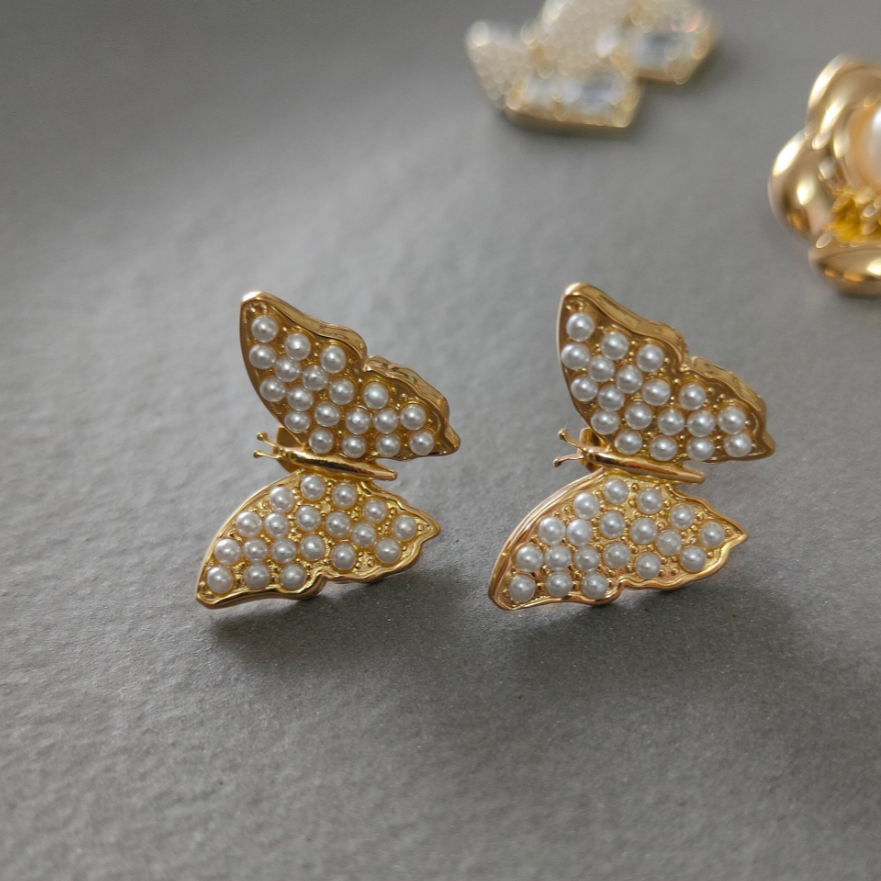 These unique Titli studs are sure to make a statement with their butterfly design and pearl detailing. The 18kt PVD plating adds a touch of glamour while also being waterproof, anti-tarnish, and hypoallergenic. They can be styled with shirts or cute floral dresses for a fun and playful look.
