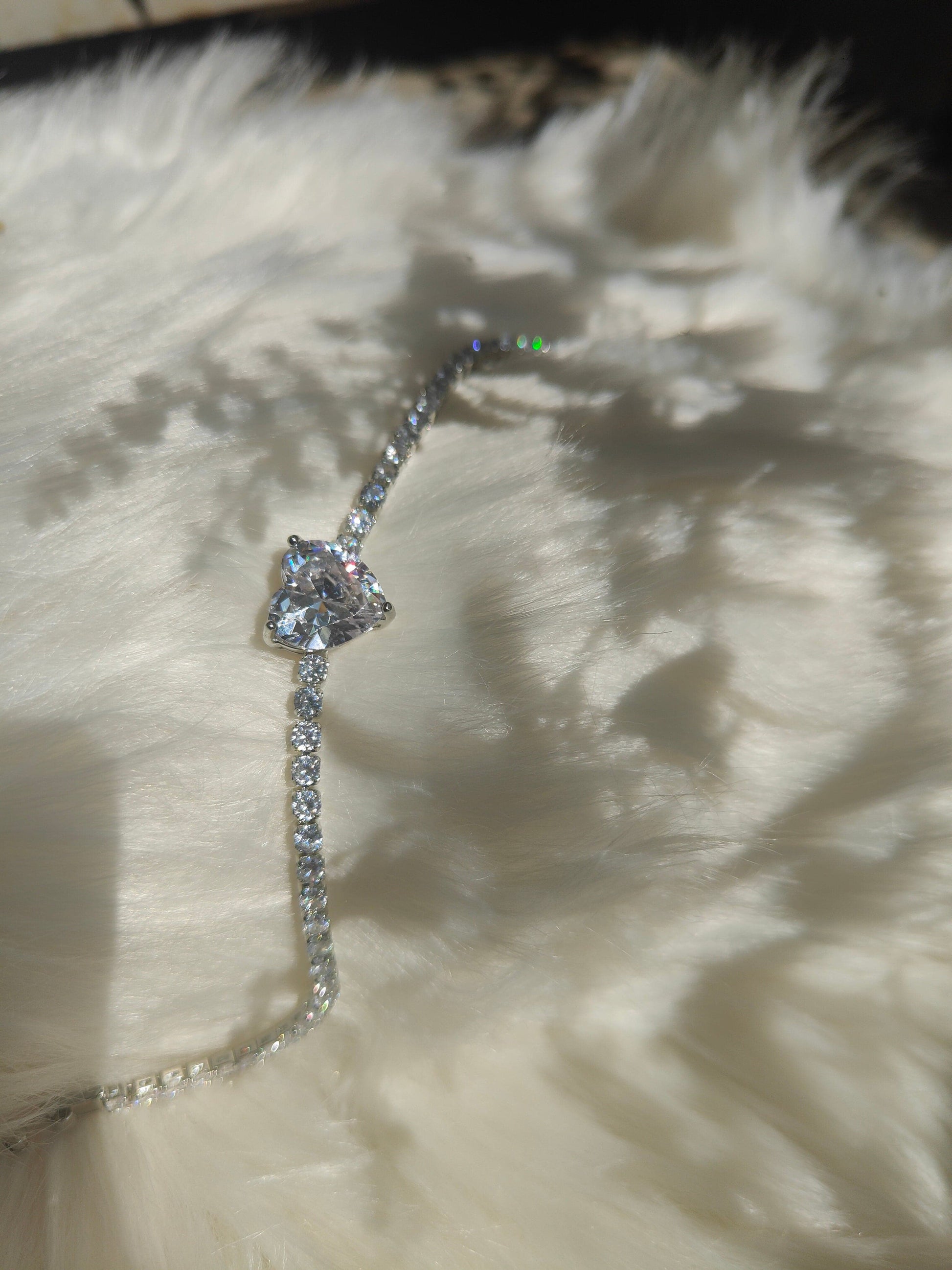 Each diamond in this bracelet is carefully selected for its exceptional brilliance, ensuring that you shine brightly on every occasion. The pièce de résistance is the single heart-shaped diamond that graces the center, symbolizing love and individuality.